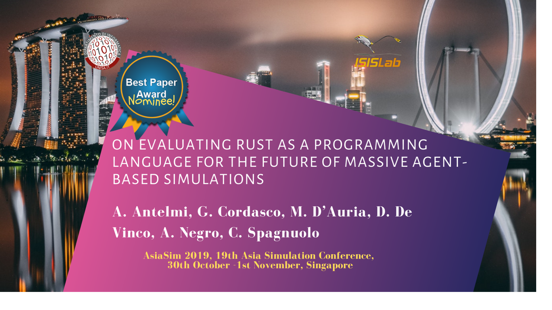Candidatura per “Best paper award”: On Evaluating Rust as a Programming Language for the Future of Massive Agent-Based Simulations, A. Antelmi, G. Cordasco, M. D’Auria, D. De Vinco, A. Negro, C. Spagnuolo