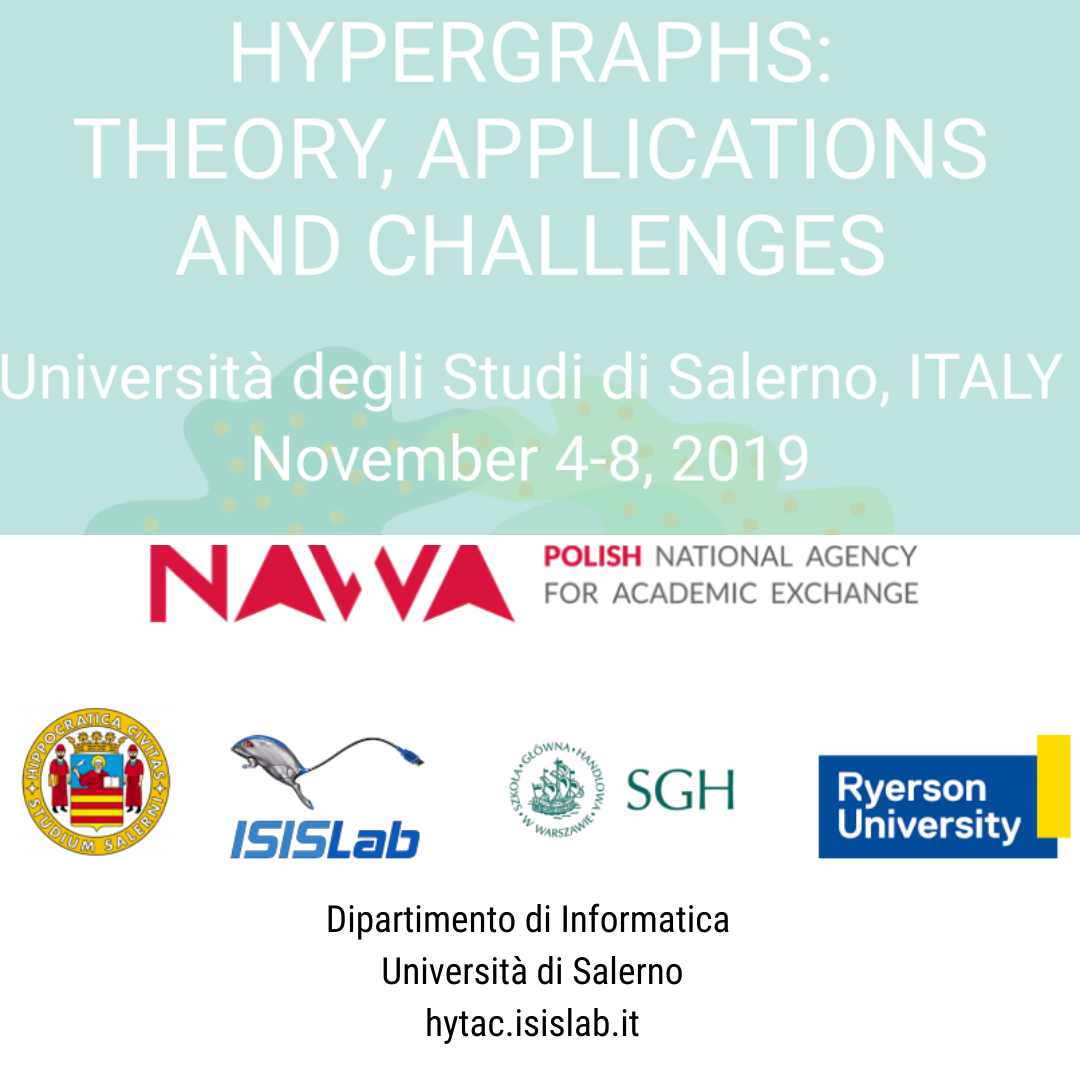 Workshop in Hypergraphs: Theory, Applications AND CHALLENGES, Università degli Studi di Salerno, ITALY November 4-8, 2019